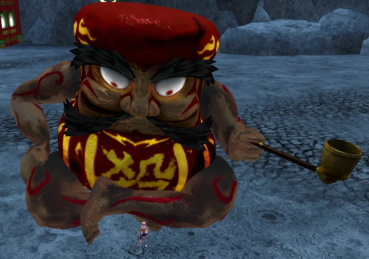 When fighting, Chief Daruma will show you his hidden technique. He throws darumas at you and gets a green shine. This green shine makes Chief Daruma invulnerable, and you must defeat the mini darumas before the green shine goes away and you can do damage to Chief Daruma once again. Best tactics for taking chief Daruma down are to use a bow and circle around him. He can do a lot of damage up close, so be careful.