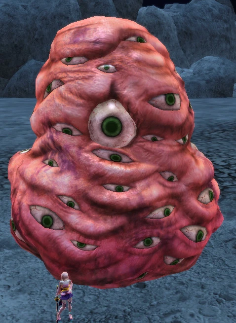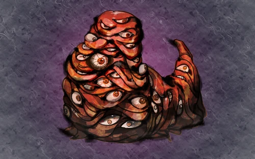 "A monster with innummerable eyes all over it's body. Just looking at it is creepy. It was said that long ago, female thieves would find themselves sprouting eyes, and would become Dodomeki! Though now, they are all pretty far from humans. Oh, but did you know that due to the dusty areas they often live in, the Dodomeki have come up with some amazing eye medications! I bet they'd be really useful for humans to use, too!"