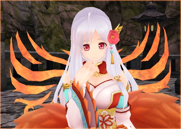 Houou is a Twin swords-user whose main element is fire. She also has access to Oodachi and Bow. She has high bonuses for holy, impact and slice elements, critical damage, and has a high base movement speed of 40. As a trade-off, she is very weak against rain and dark element attacks..